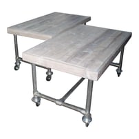 Nieuwe steigerbuizen worden veel gebruikt als onderstel voor tafels.